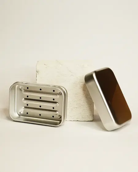 Wenn Sie Ihre Seife mitnehmen oder einfach nur sicher und trocken aufbewahren müssen, ist es schön, wenn Sie praktische und schöne Lösungen haben. Hier finden Sie Seifenbehälter und -taschen, die Ihre feste Seife oder Ihr Shampoo in Ihrer Tasche, auf Reisen oder zu Hause schützen. Einige der Behälter haben ein eingebautes Gitter, damit die Seife zwischen den Anwendungen trocknen kann - auch unterwegs.